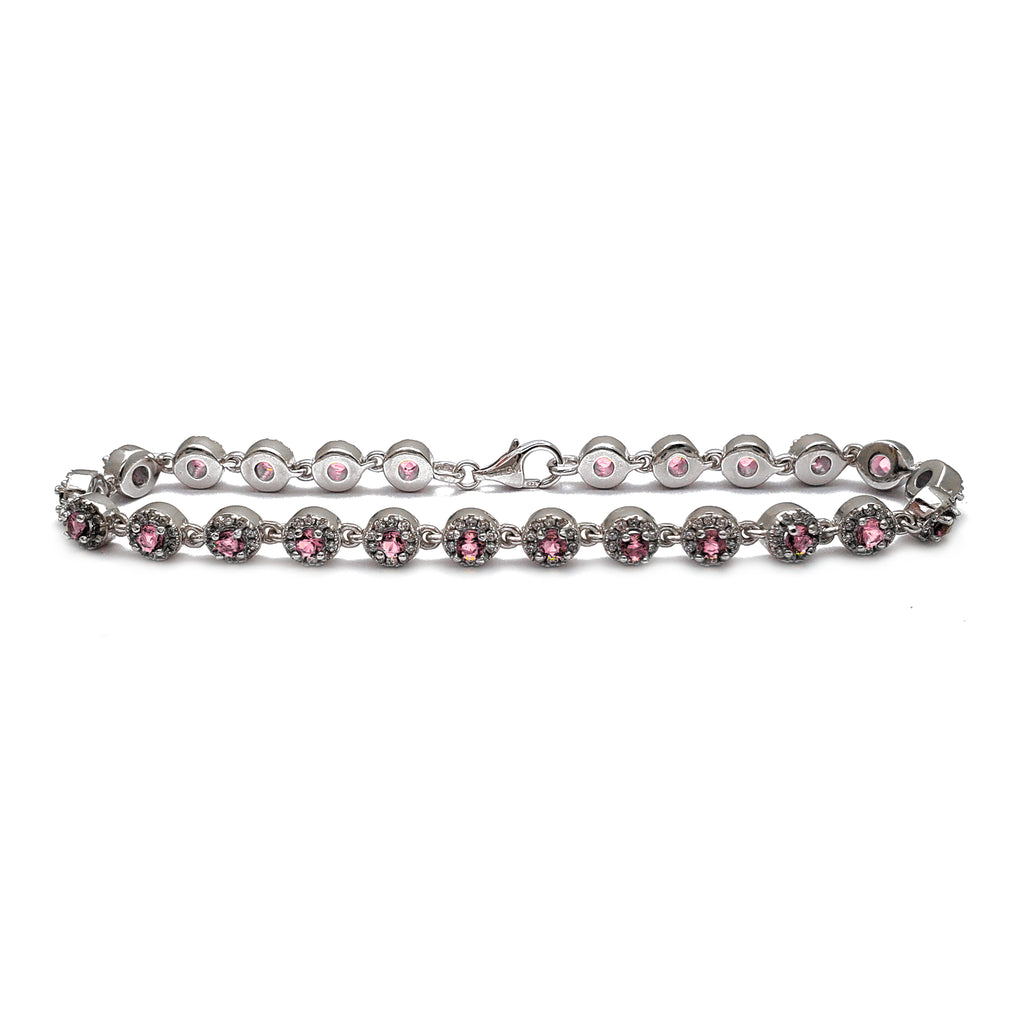 Zirconia Pink Round Pave Tennis Bracelet (Silver)