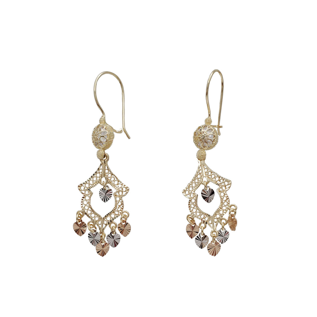 Tricolor 5-Hearts Chandelier Dangling Earrings (14K)