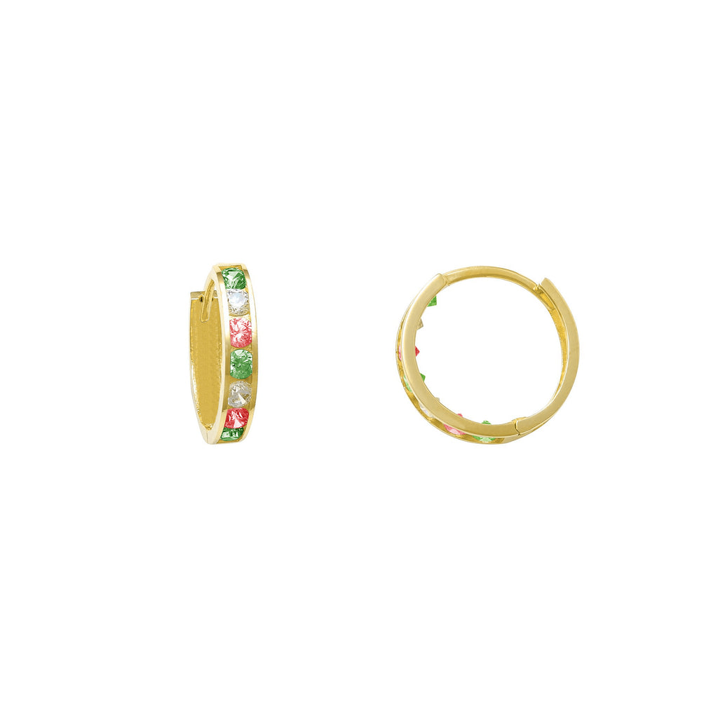 Zirconia Green-Red-White Huggie Earrings (14K)