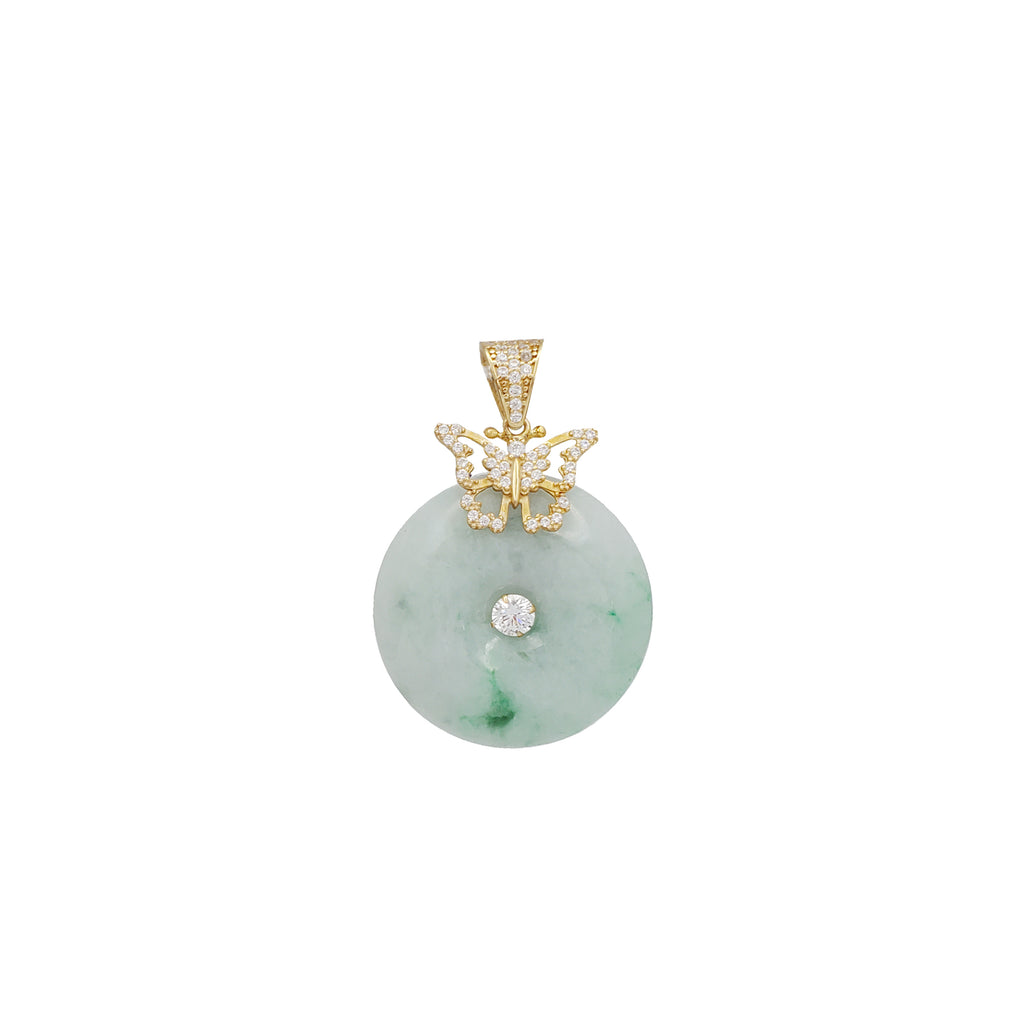 Round Butterfly Jade Pendant (14K)