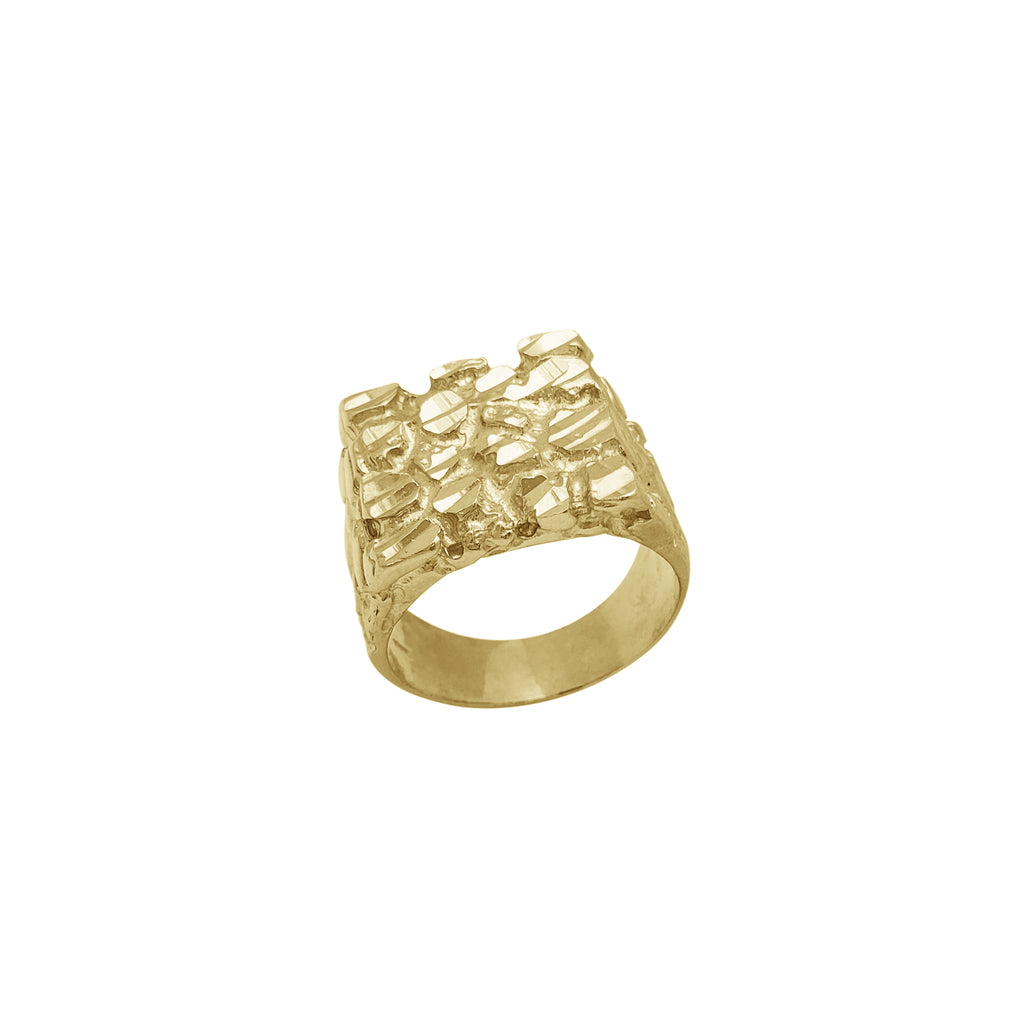 Textured Diamond-cut Nugget Square Signet Ring (10K)