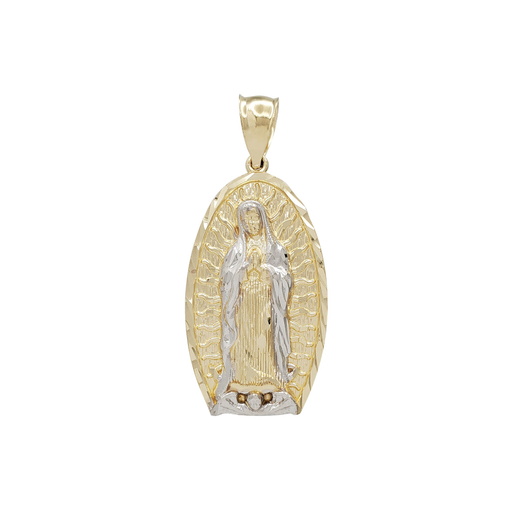 Two-Tone Textured Virgin Mary Pendant (14K)