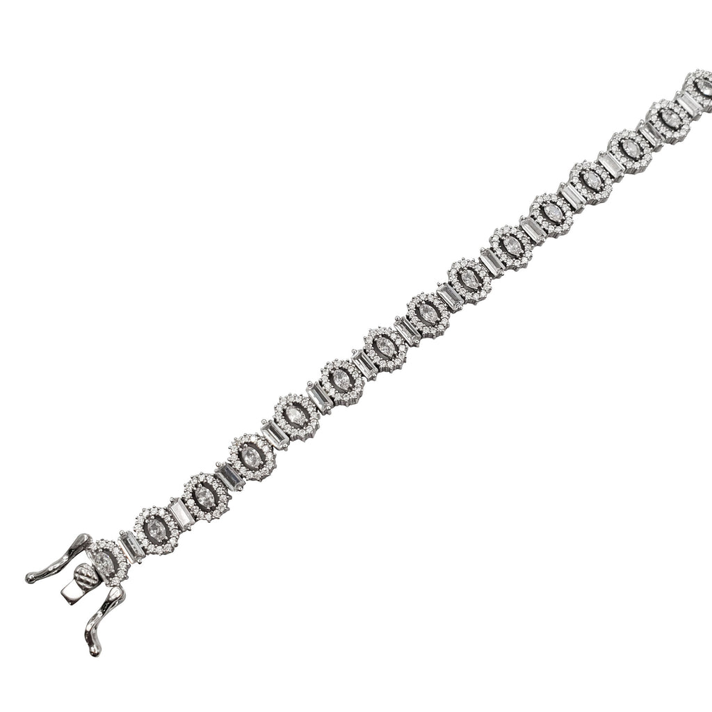 Halo Oval & Baguette Cubic Zirconia Bracelet (Silver)