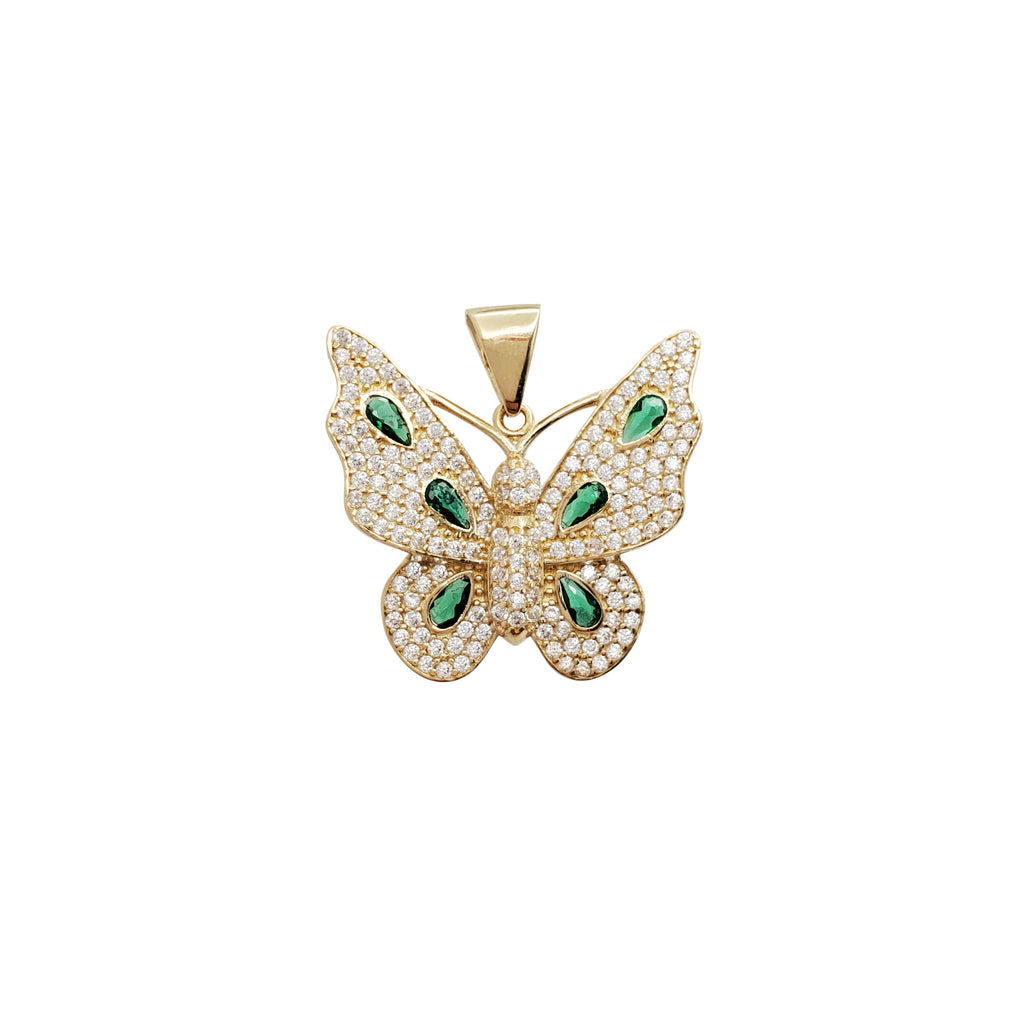 Stoneset Green Droplet Butterfly Pendant (14K)