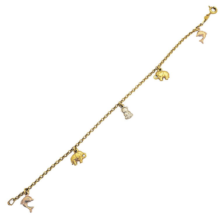Tri-Color Animal Charm Bracelet (14K).