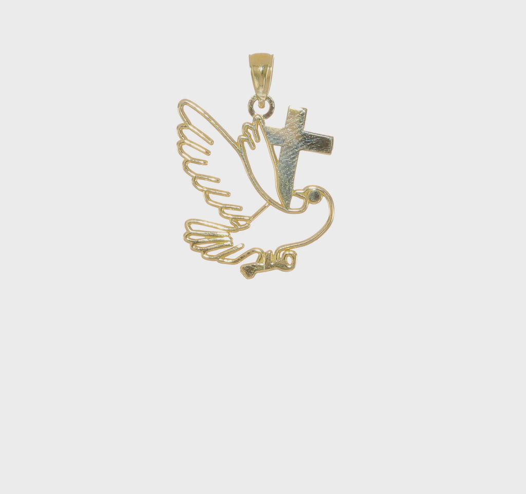 Outline Dove & Cross Pendant (14K)