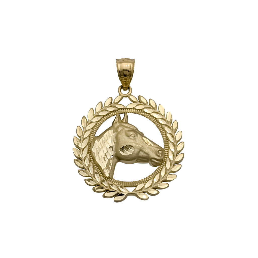 Satin Finish Horse Head Leaf Frame Pendant (14K)