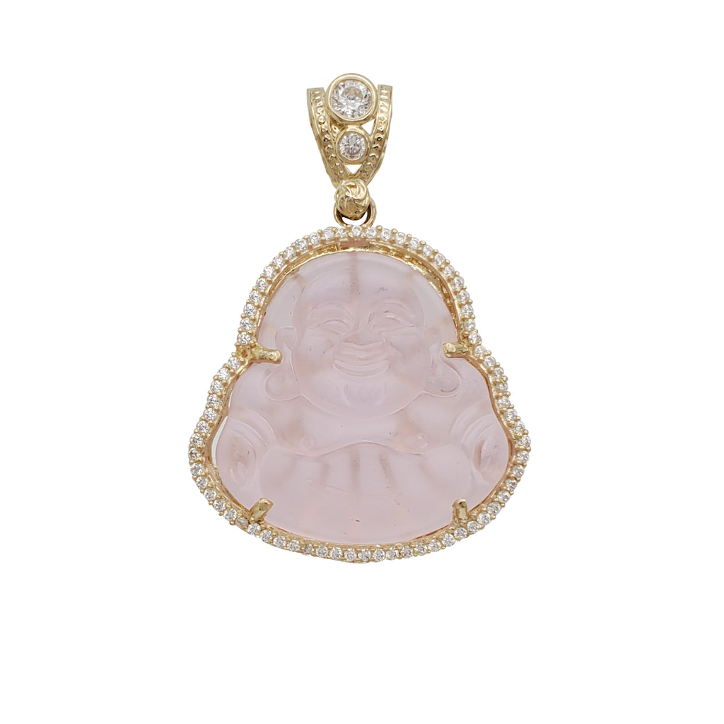 Stoneset Frame Colored Stone Laughing Buddha Pendant (14K)