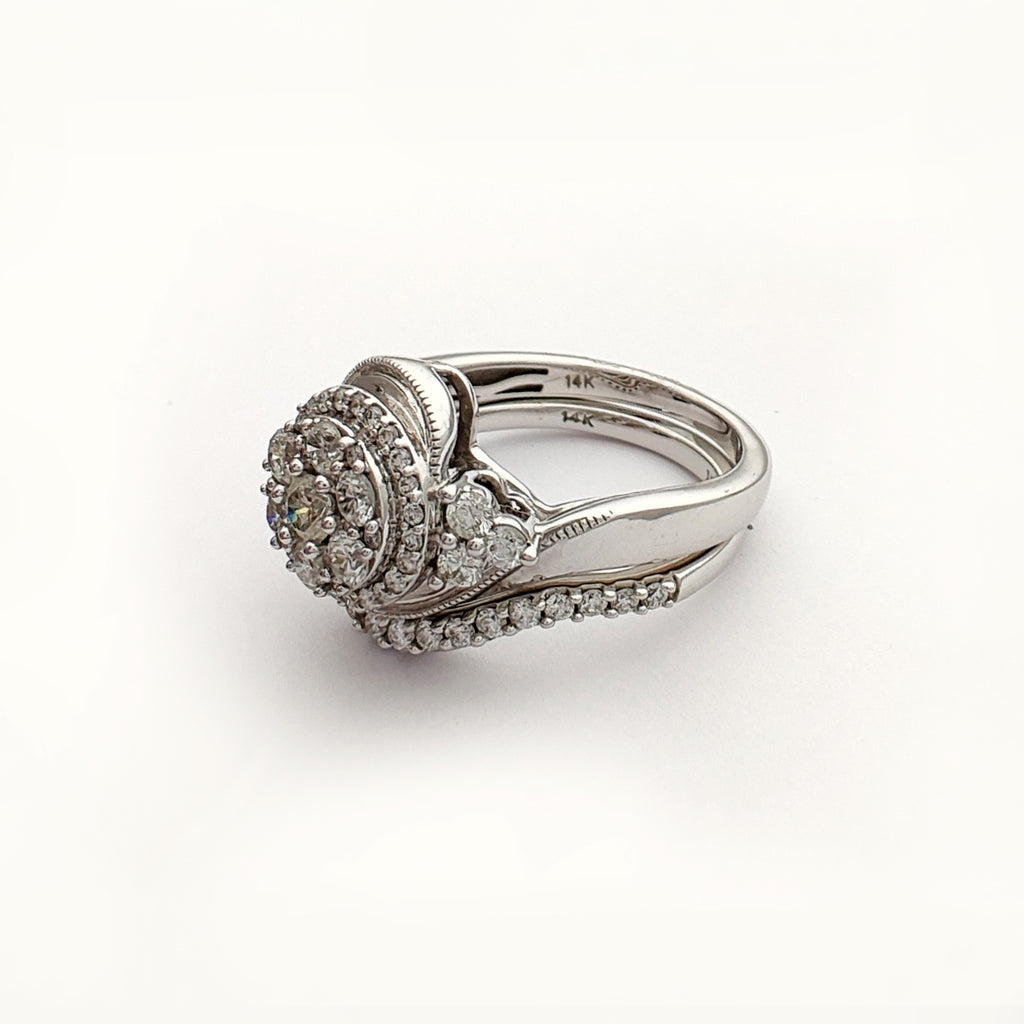 Diamond Spiral-Eye Engagement & Wedding Ring Set(14K)