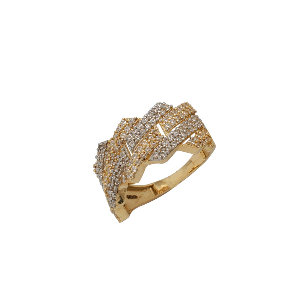 Zirconia Two-Tone Edged Cuban Ring (14K)