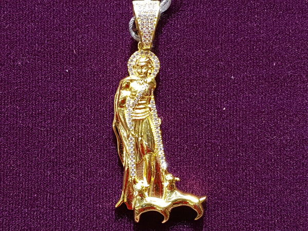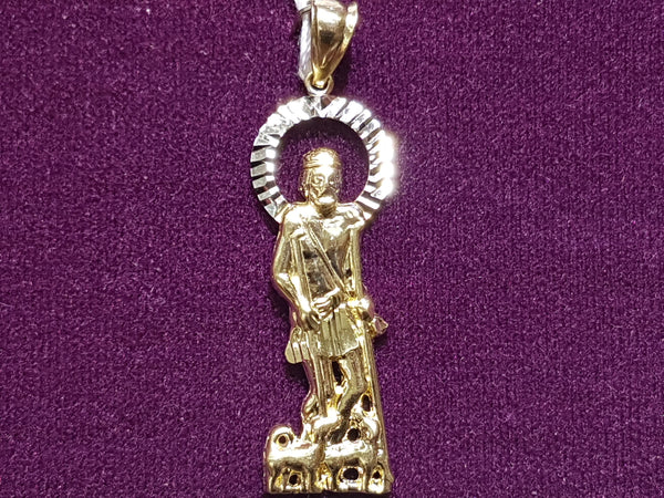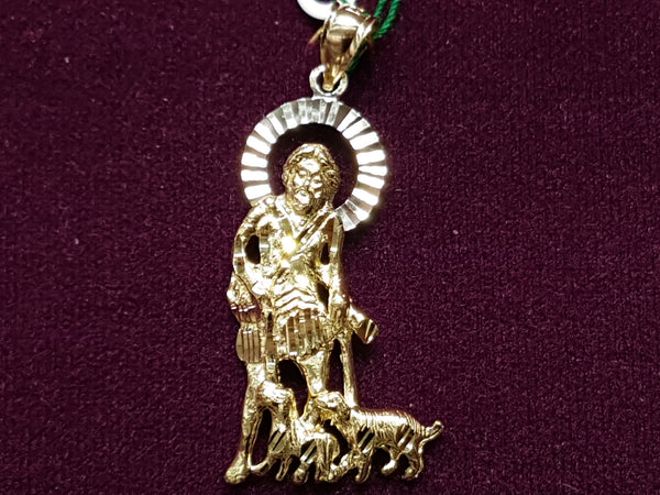 Solid Saint Lazarus Pendant with White Halo (14K)