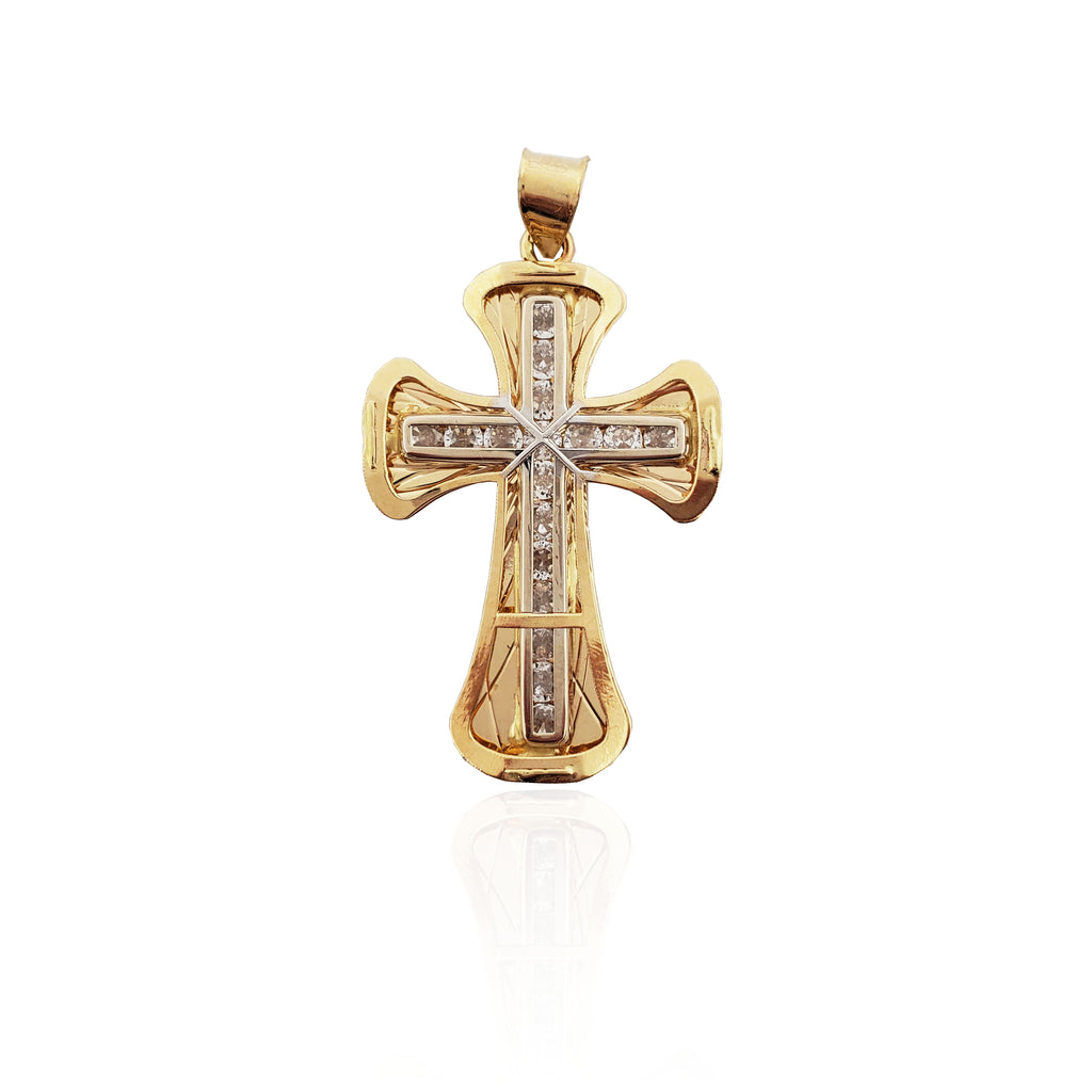 Two-Tone Cross CZ Pendant (14K)