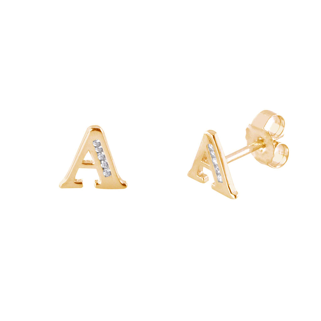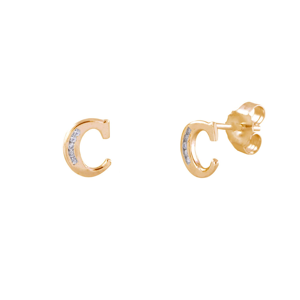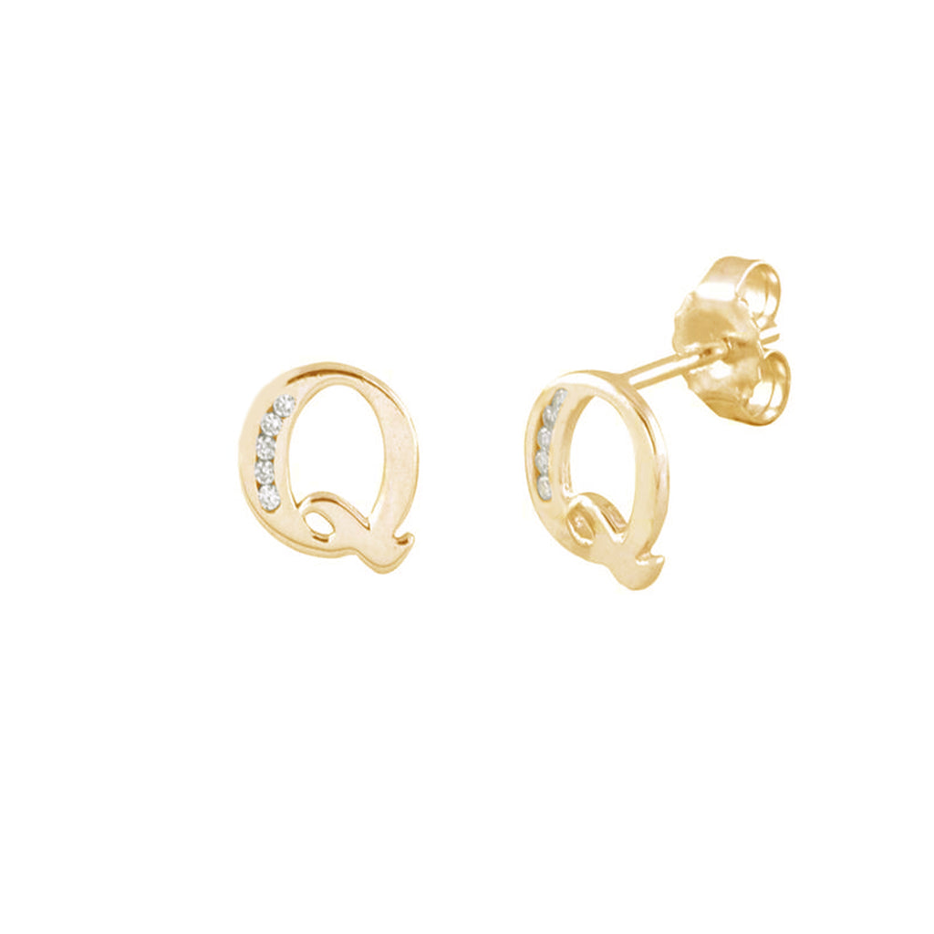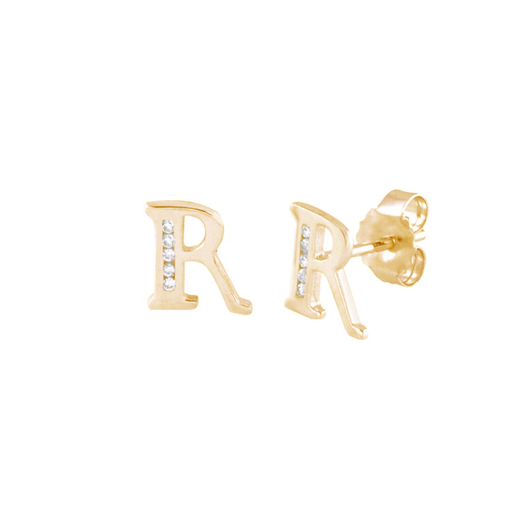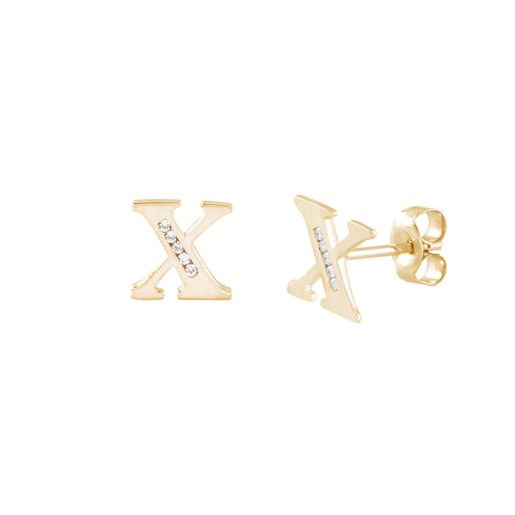 [10 mm] CZ Initial Letters Stud Earrings (14K)