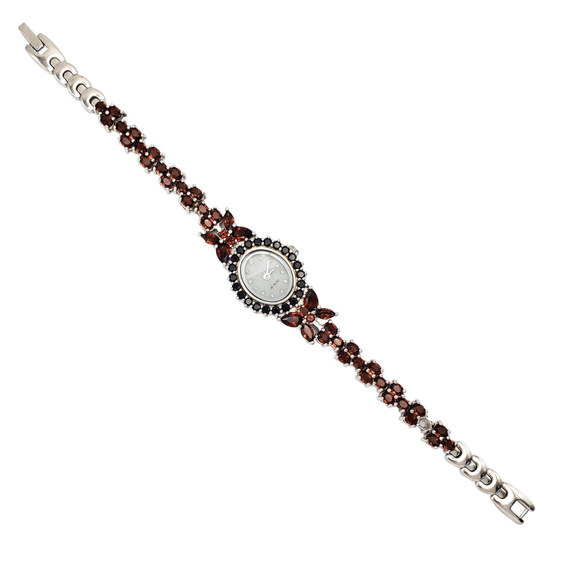 Black Onyx & Garnet Watch (Silver)