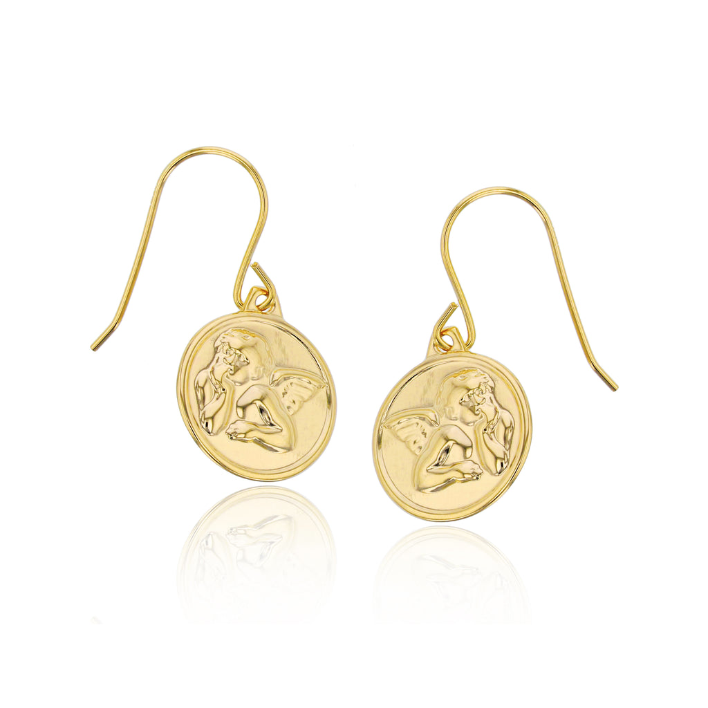 Thoughtful Baby Angel Hanging Earrings (14K)