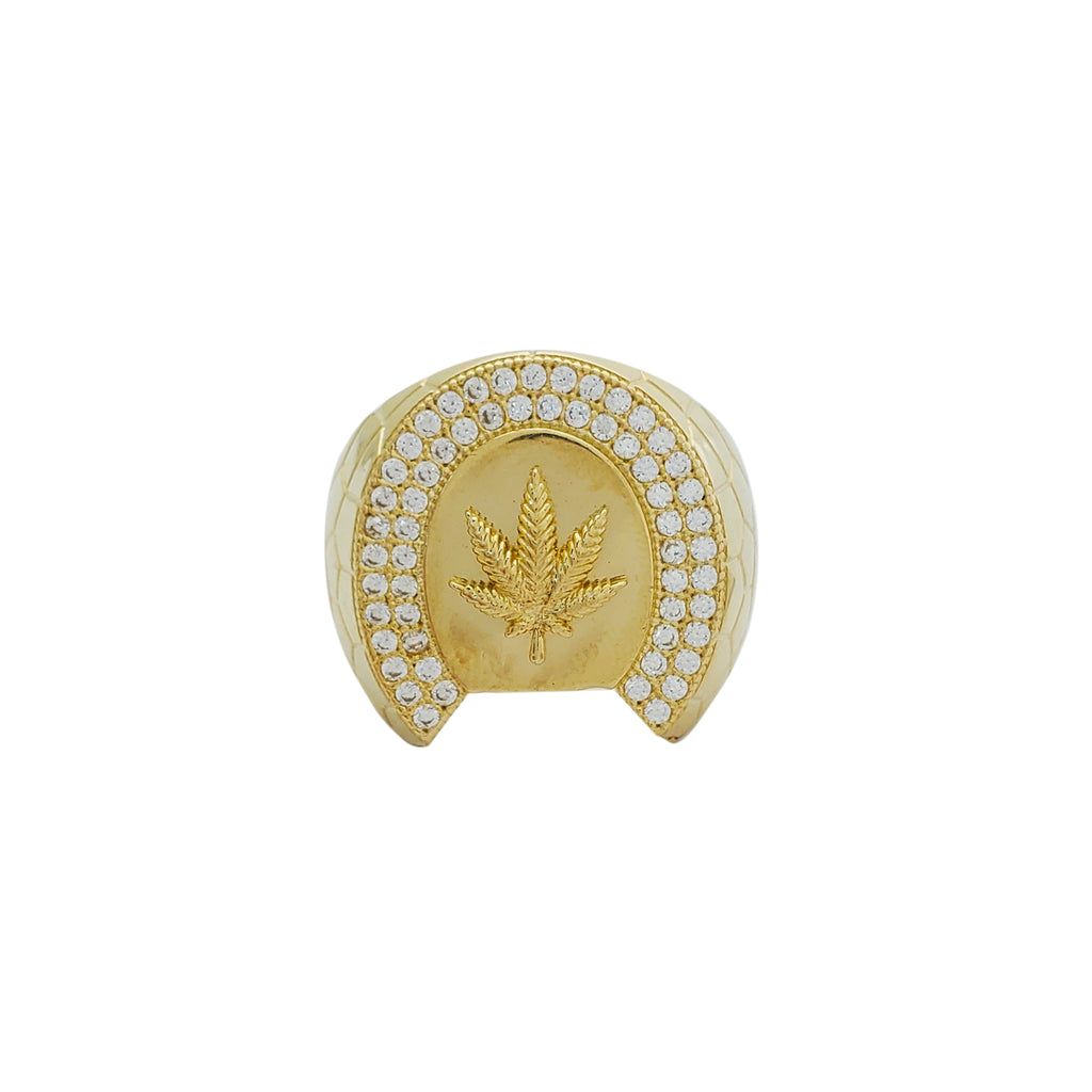 Cobble Mosaic Accent Cannabis Leaf Ring (10K)
