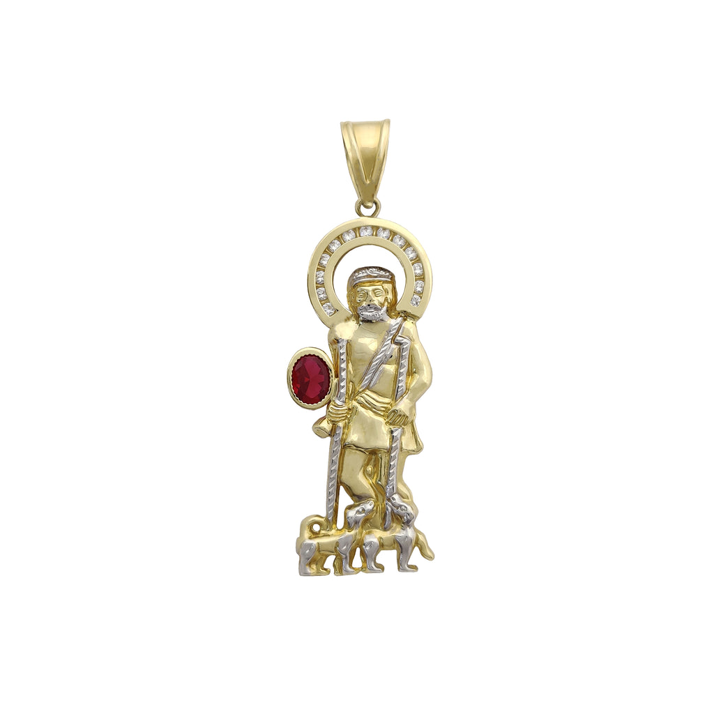 Diamond Cut Red Stone Saint Lazarus Pendant (14K)