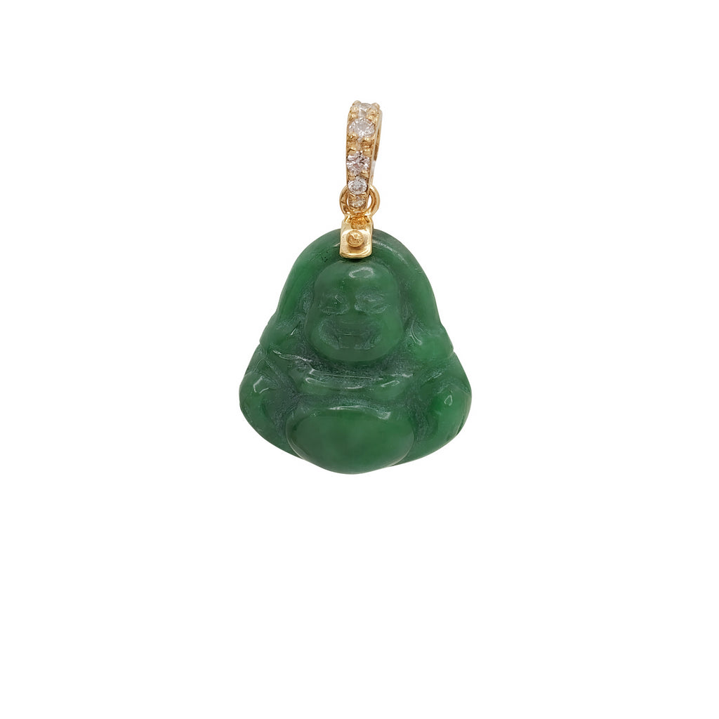 Diamond Dark Green Jade Laughing Buddha Pendant (14K)