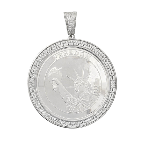 Zirconia Solid Medallion "FREEDOM" Liberty Twins Tower Pendant (Silver)