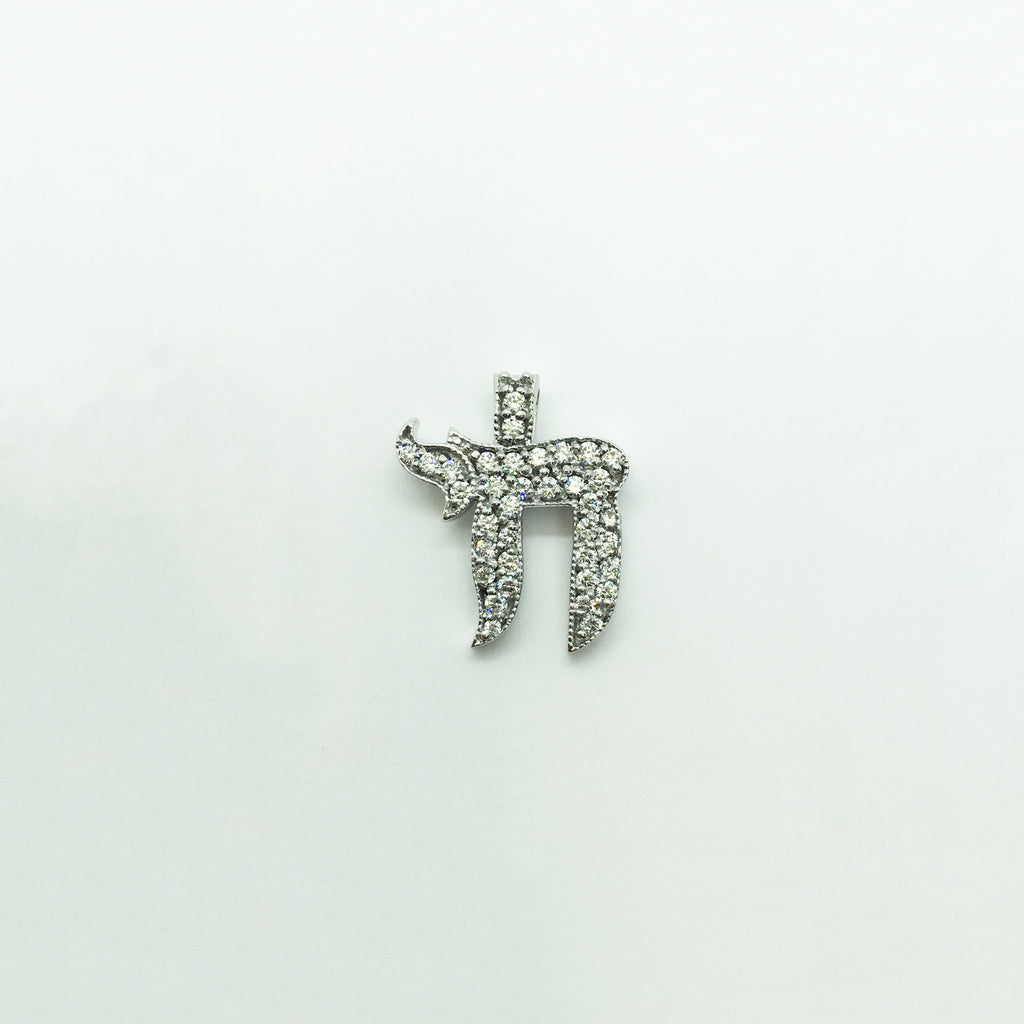 A gleaming Chai pendant iced with white VS diamonds and bordered with milgrain details.