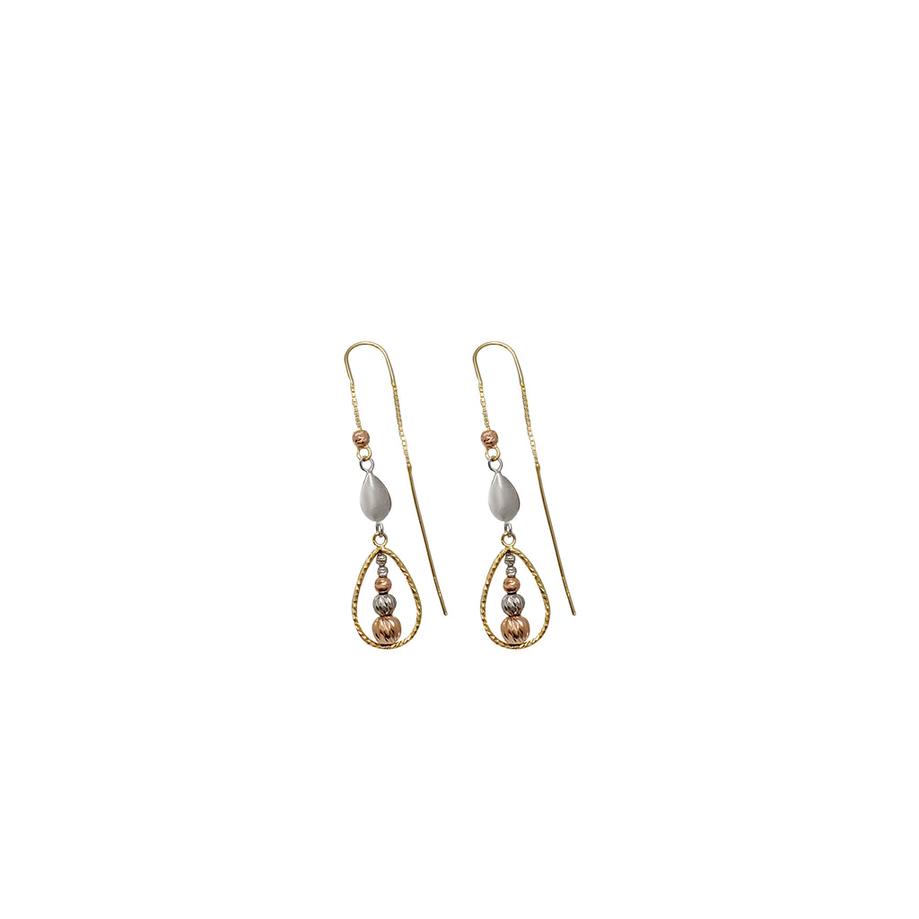 Tricolor Diamond-Cut Teardrop Design Dangling Earrings (14K)