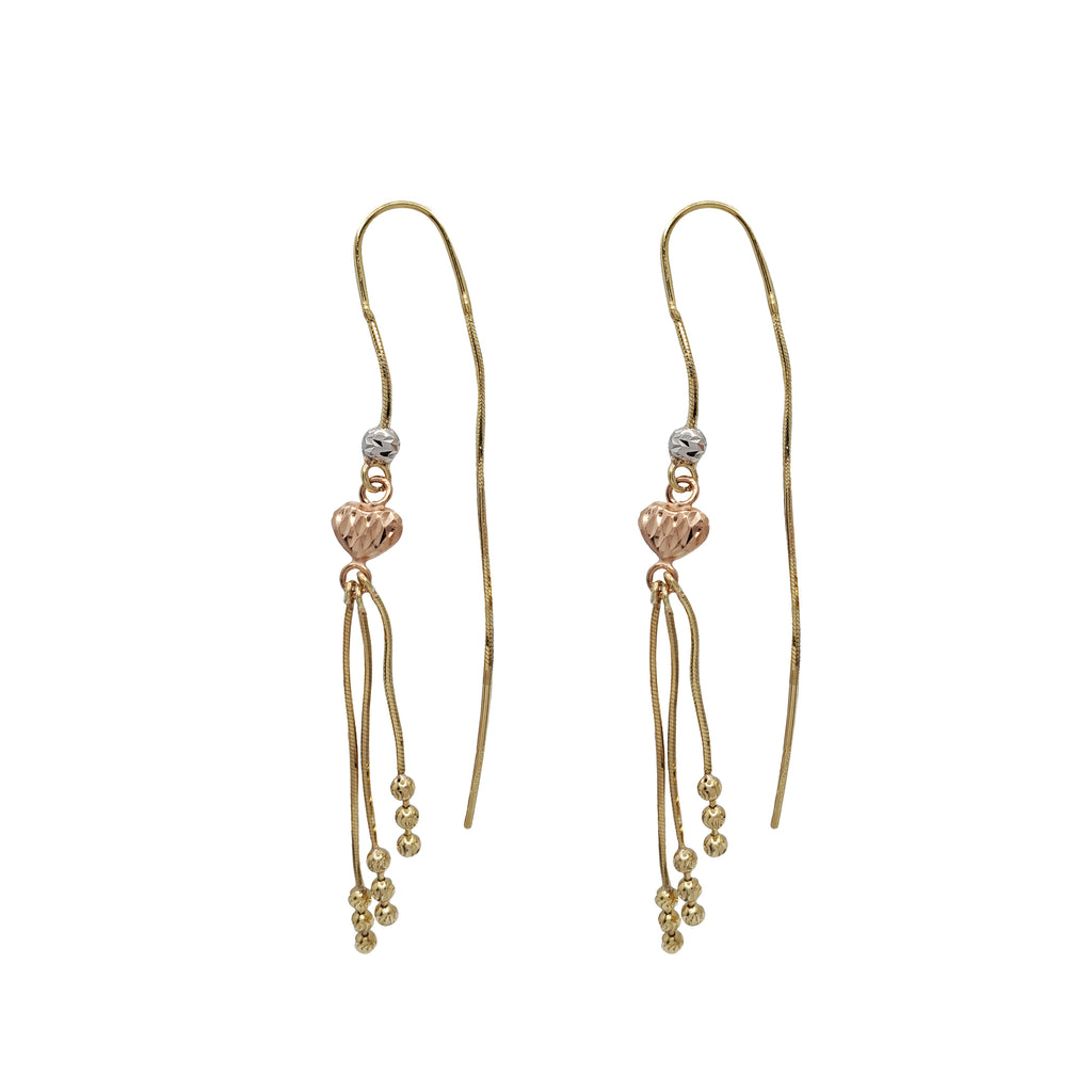 Tricolor Heart Dangling Earrings (14K)