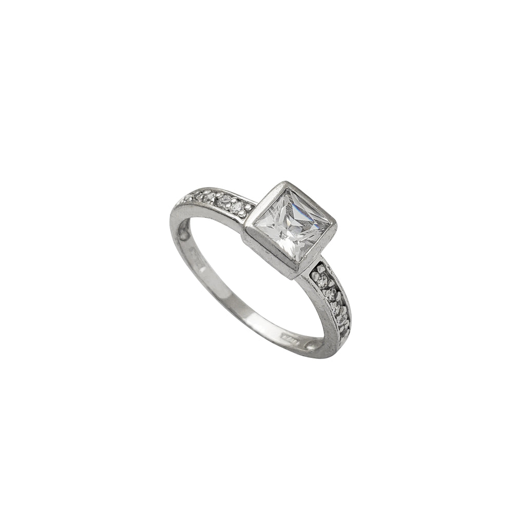 Bezel Princess-Cut Setting Engagement Ring (Silver)