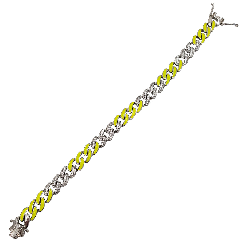 Zirconia Neon Enamel Cuban Bracelet (Silver)