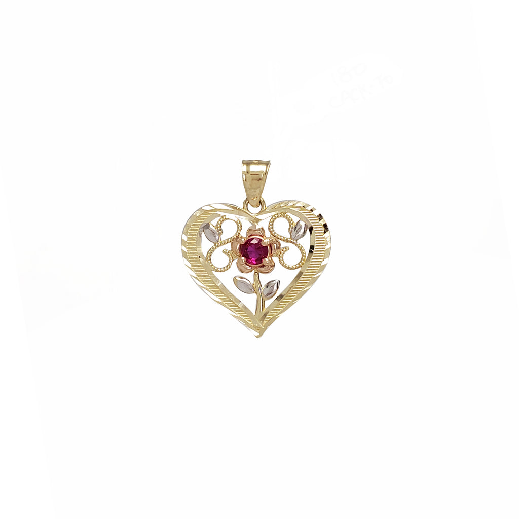 Diamond-Cut Red CZ Heart Pendant (14K)
