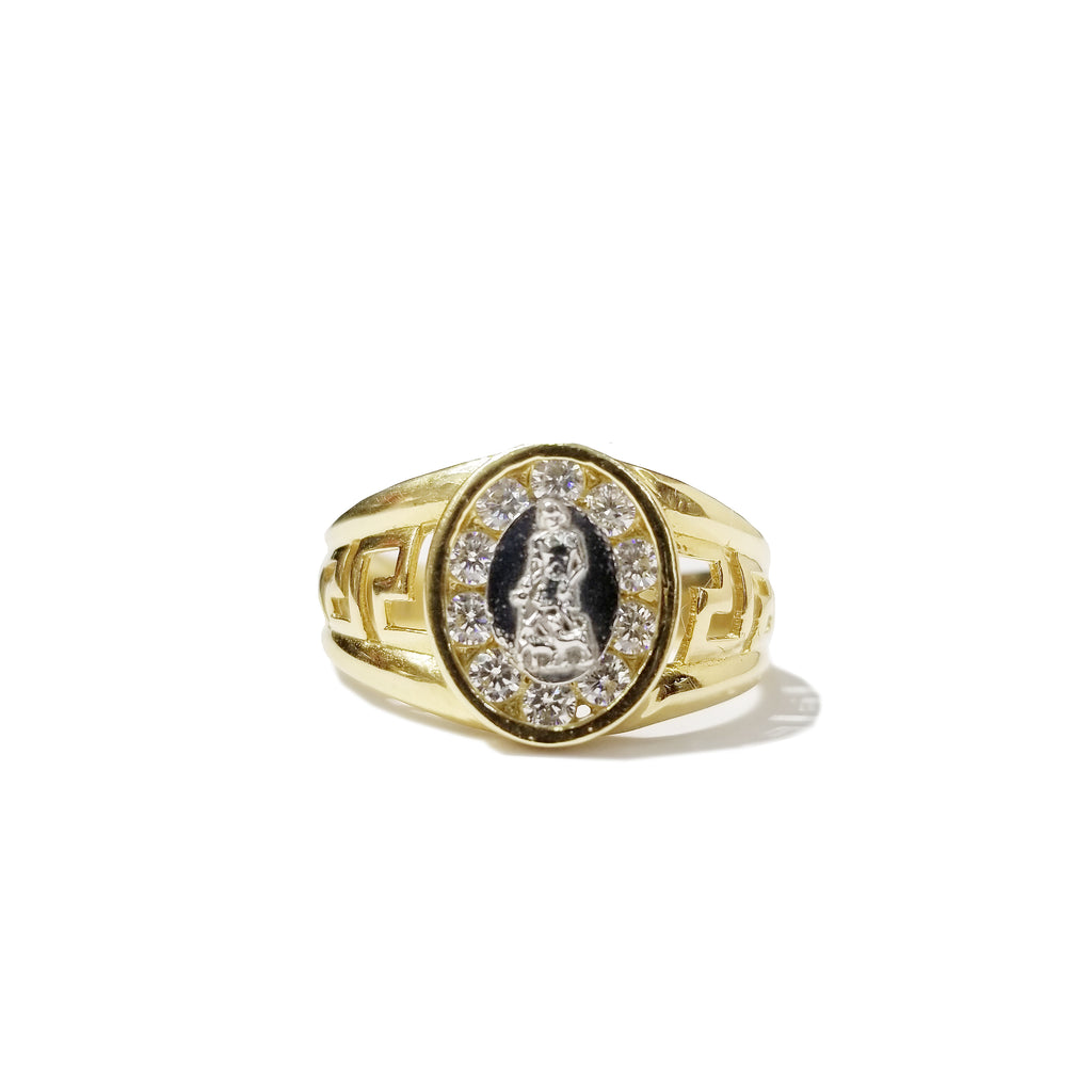 Description: This is a Saint Two-Toned Gold CZ Crystals Ring (14K) made with the highest quality gold metal that has been polished and refined to perfection.