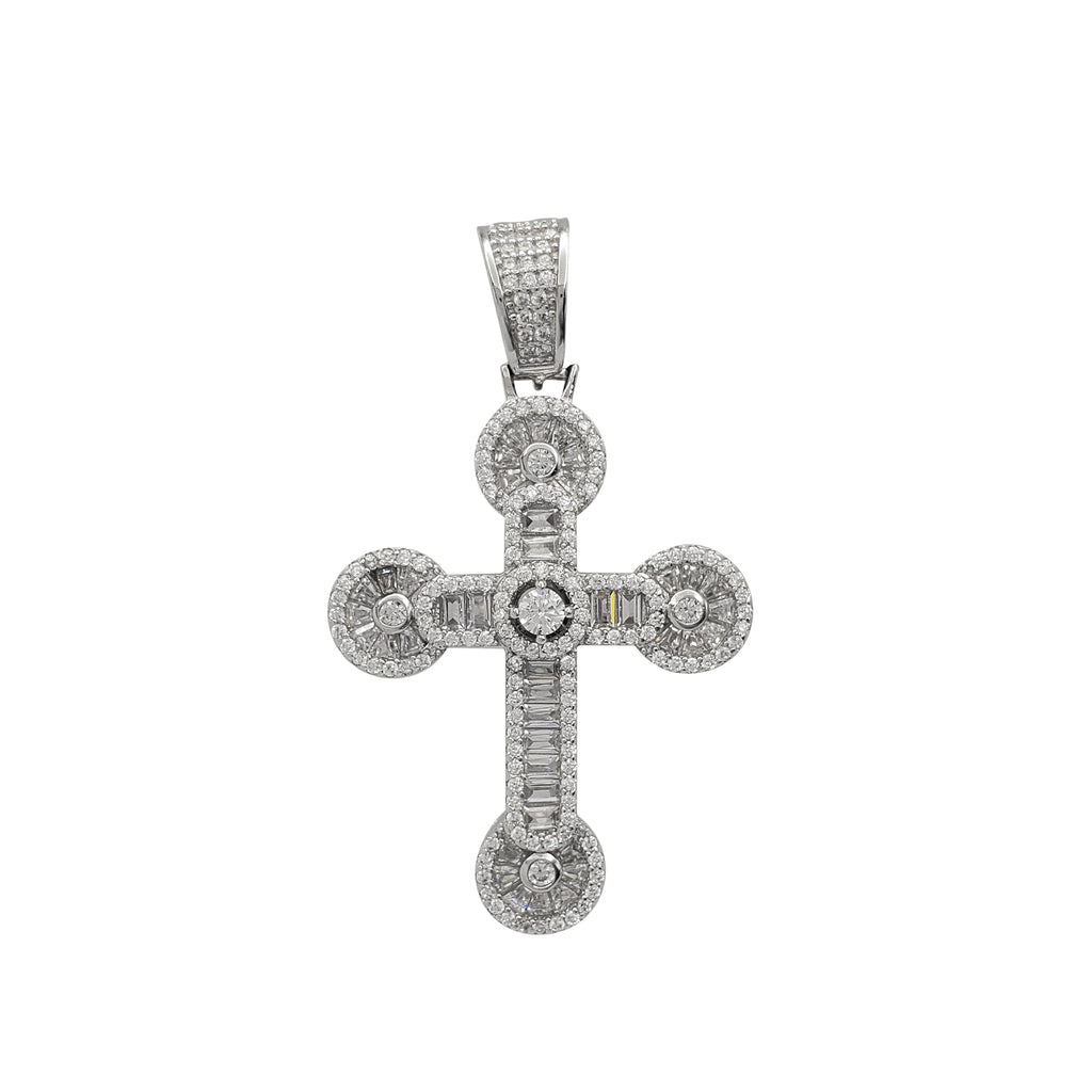 Stone-set Round & Baguettes Cross Pendant (Silver)