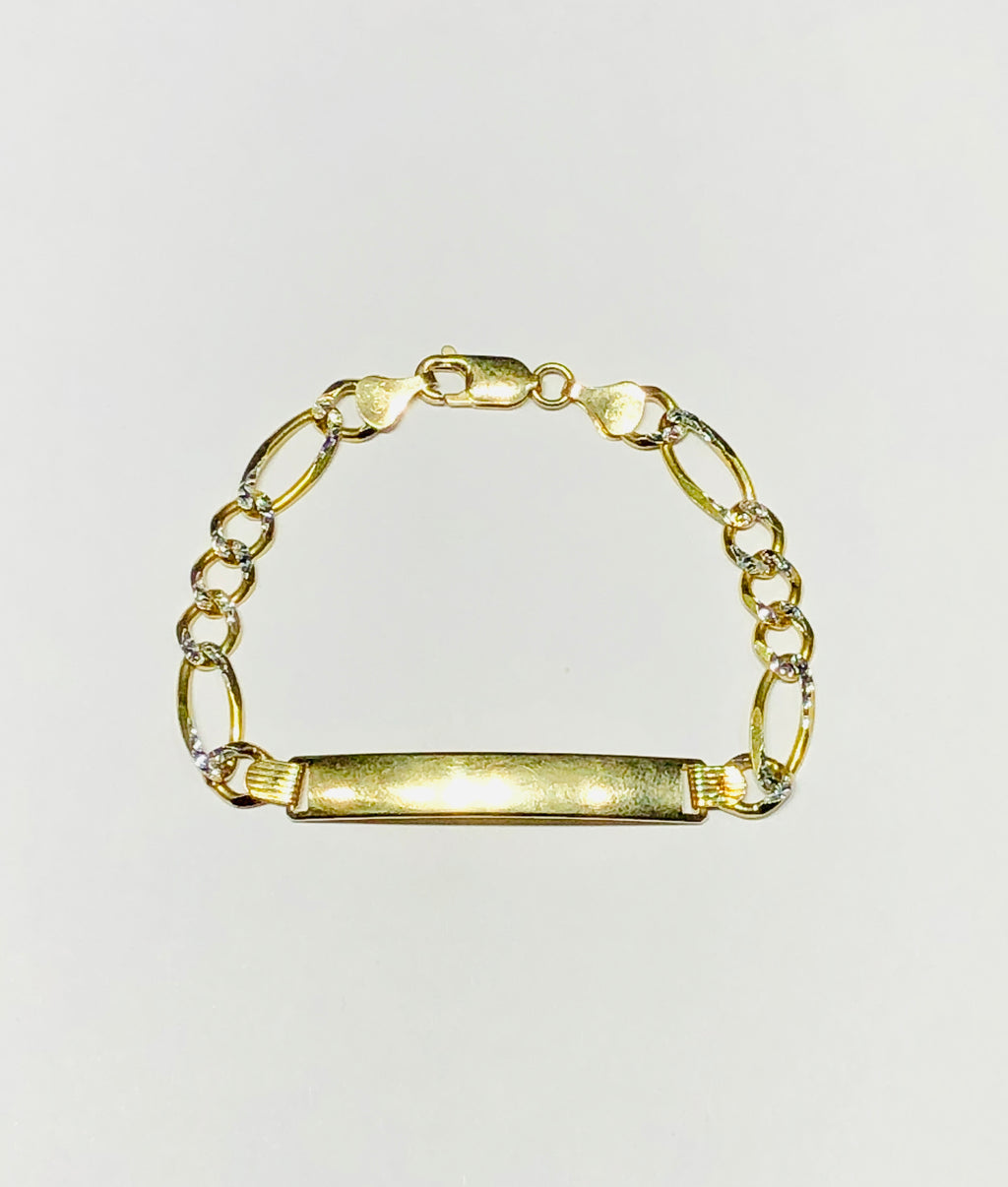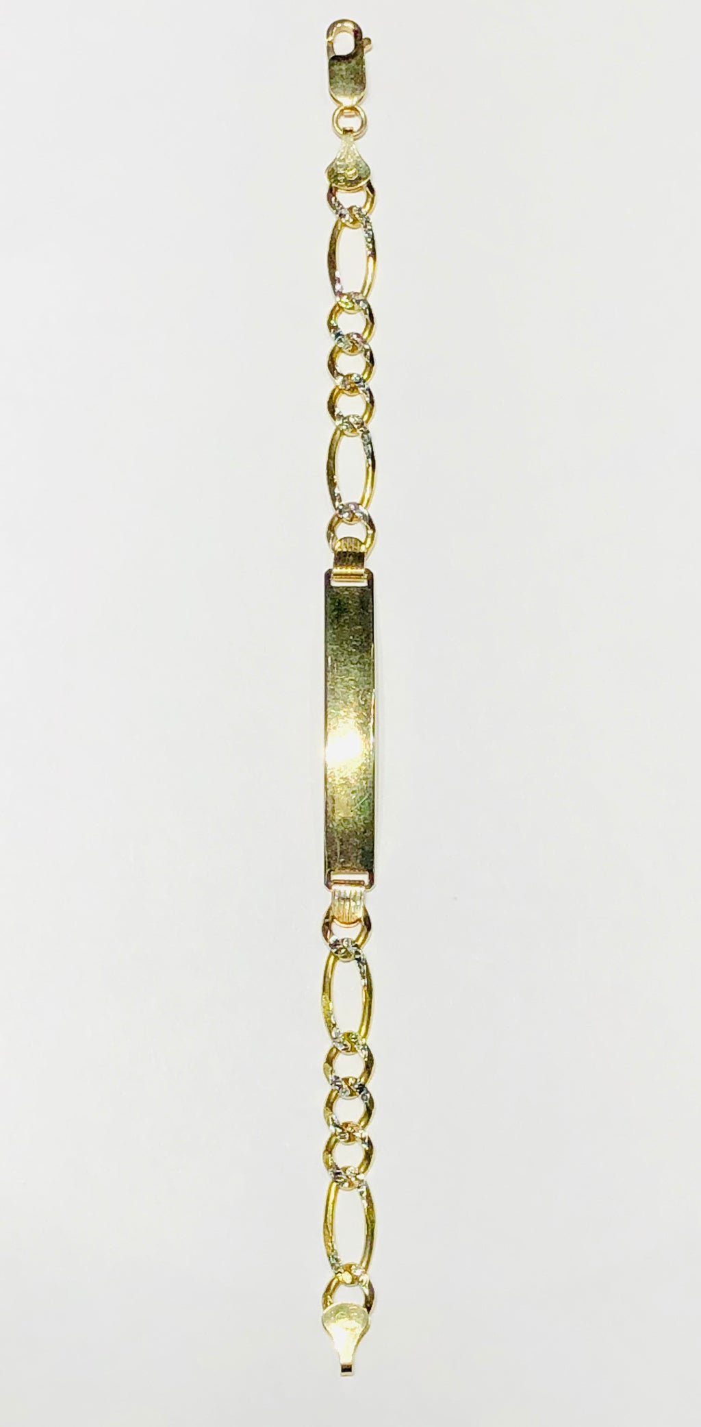Two Tone ID Figaro Diamond-Cut Bracelet (14K)