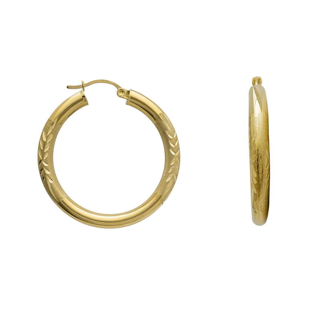 Sandblasted Diamond-cut Hoop Earrings (14K)