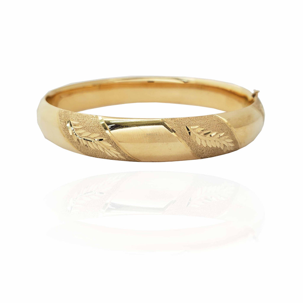 Diamond Dust and Cut Leaf Design Bangle Bracelet (14K).