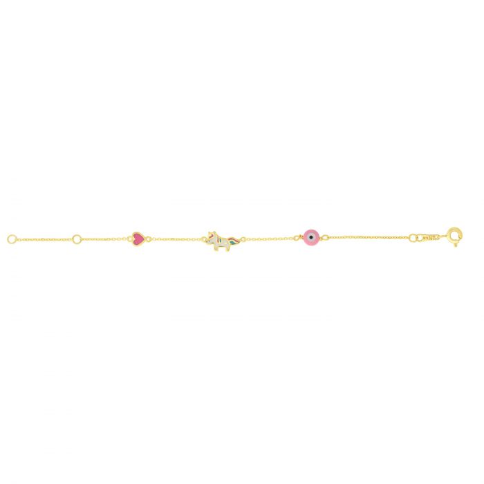 Enamel Heart Unicorn and Evil Eye Baby Bracelet (14K).
