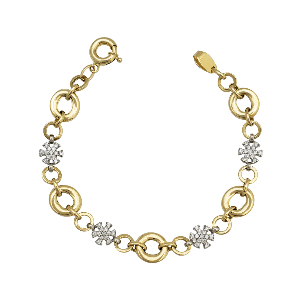 Zirconia Hoop Snowflakes Link Fancy Bracelet (14K)