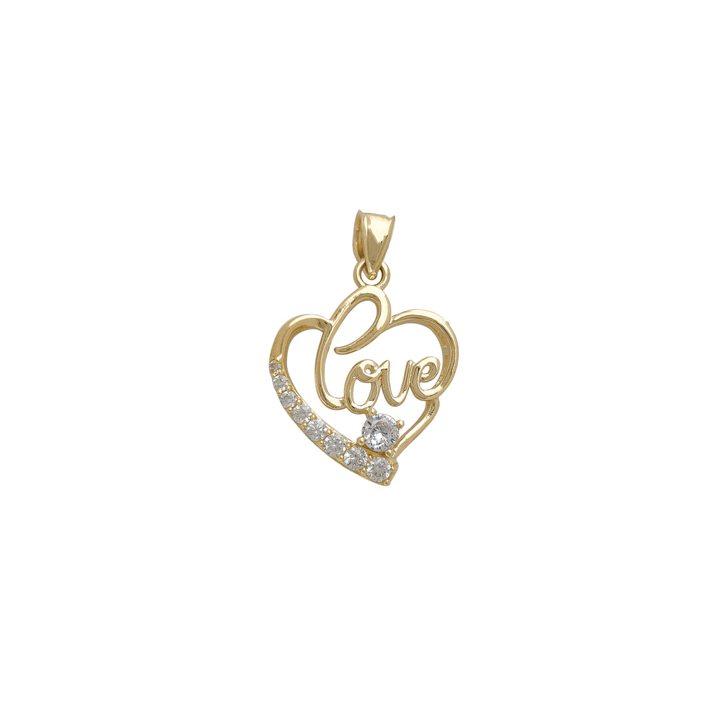 Zirconia Outline Heart Script "Love" Pendant (14K)