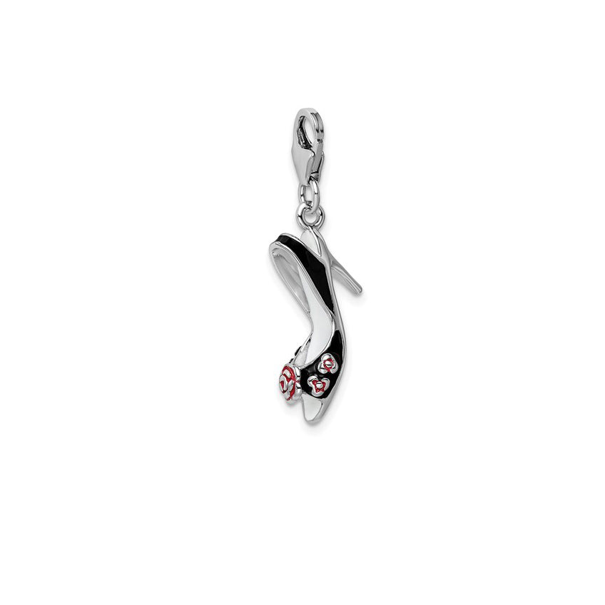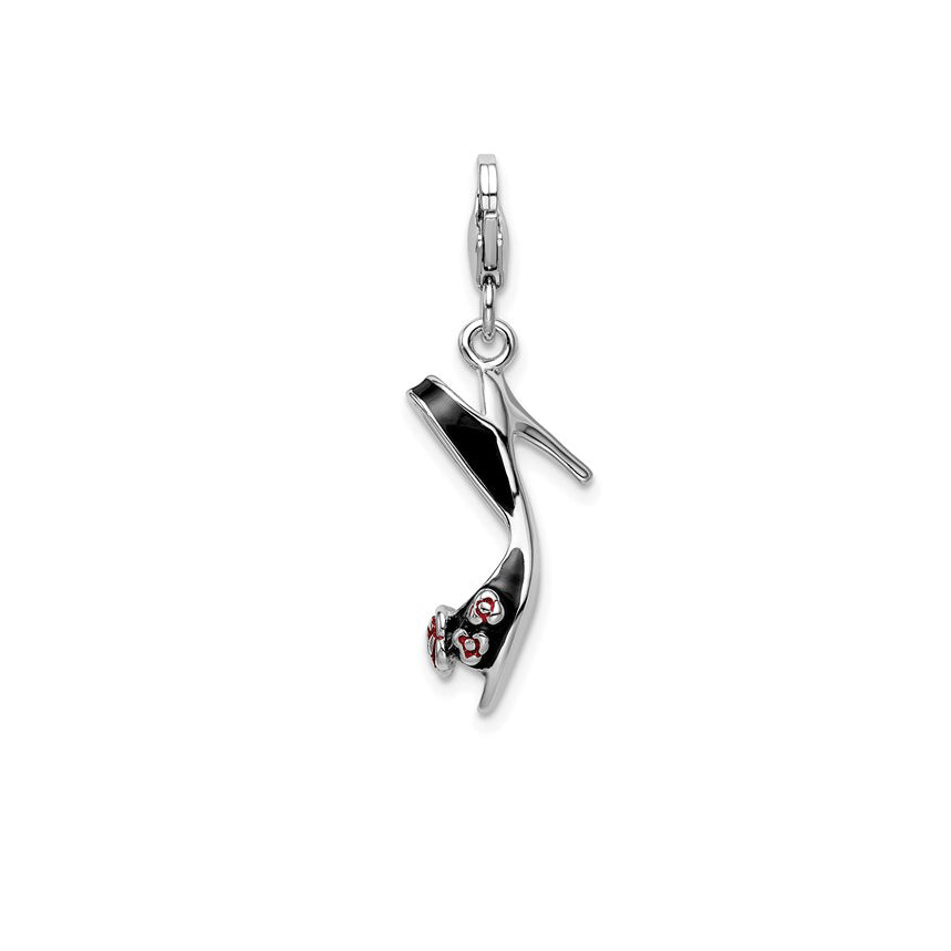 3-D Enameled Flower Black High Heel Charm (Silver)