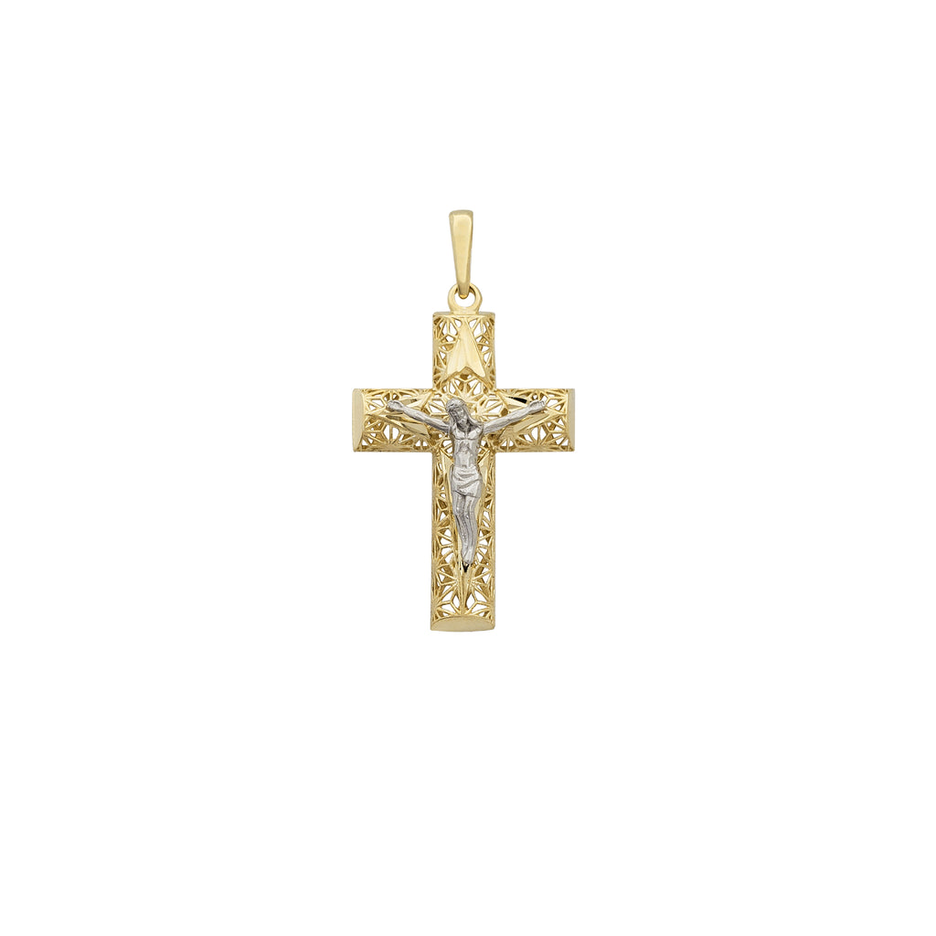Diamond-cuts Filigree Patterns Crucifix Pendant (14K)