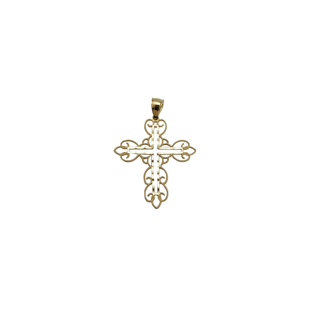 Two-Tone Lacy Outline Cross Pendant (14K)