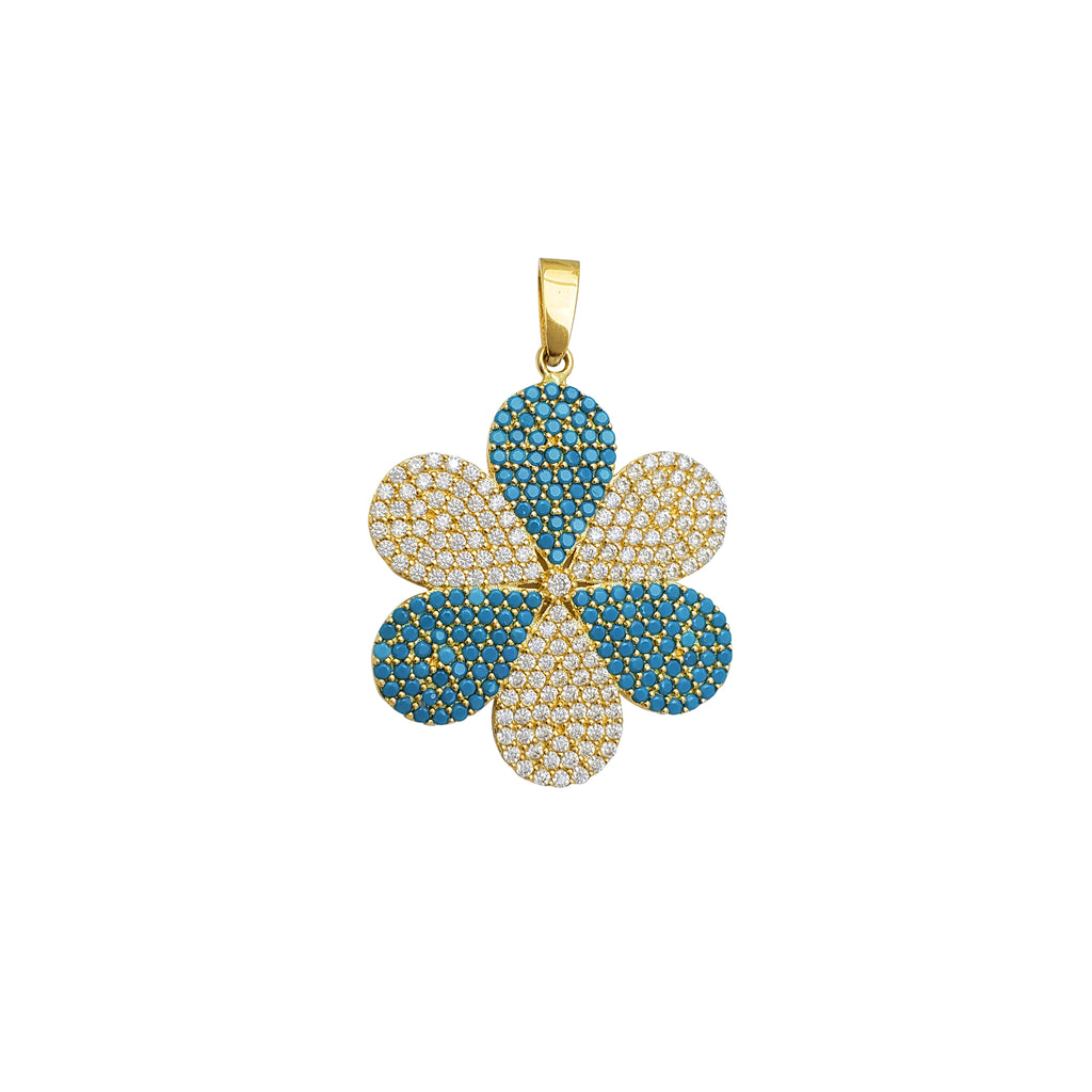 Zirconia Cyan Six-Petals Flower Pendant (14K)