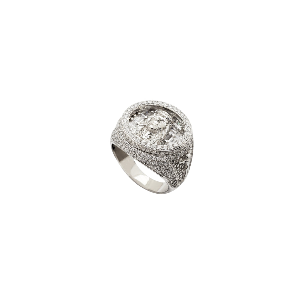 Iced-Out Depth Jesus Head CZ Ring (Silver)