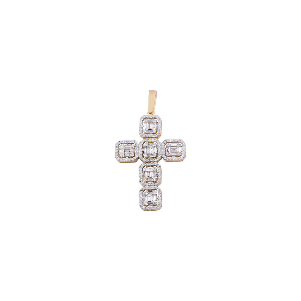 Baguette & Round Brilliant Diamond Cross Pendant (14K)