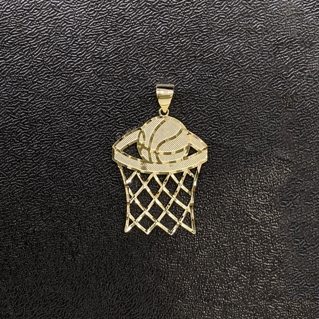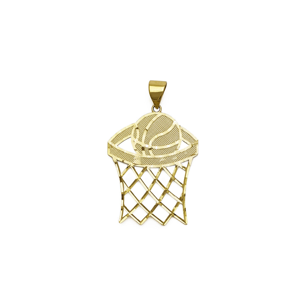 The NBA season is back! And this basketball hoop pendant enhanced with shinny accents all over the net area, and the borders of the ball is a must-have piece. This gold MVP of a pendant will shine like all the promising rookies of this year's season.