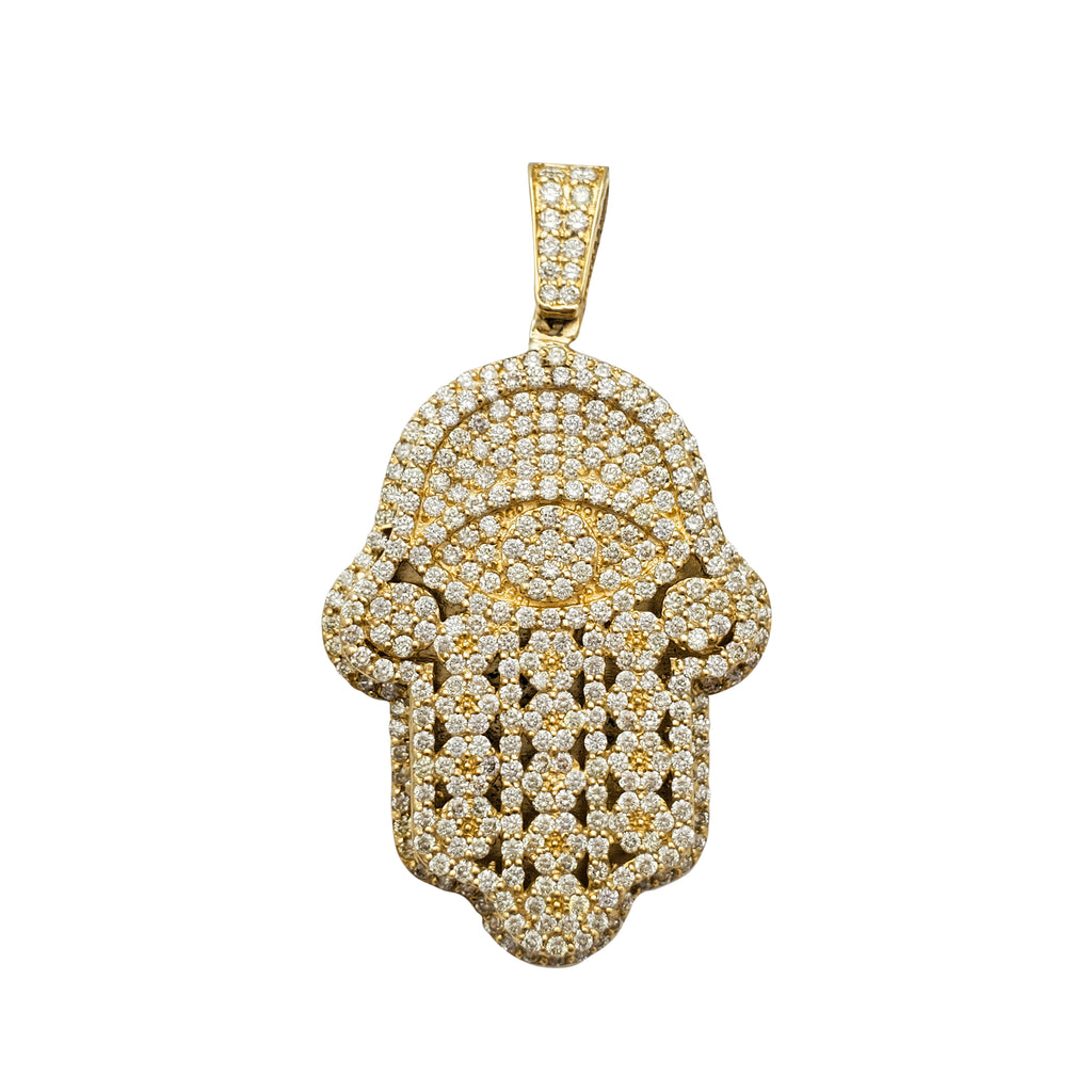 Diamond Evil Eye Hamsa Hand Pendant (14K)