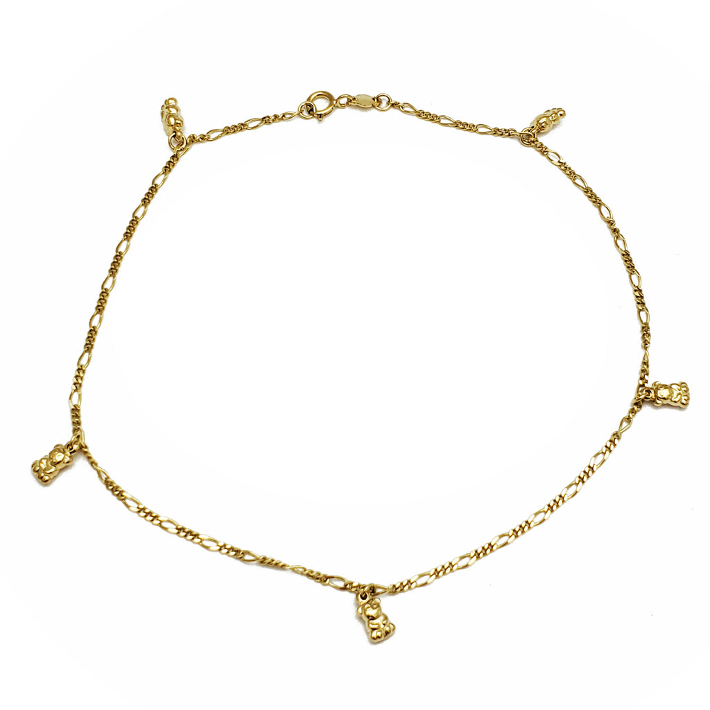 Figaro Teddy Bear Charm Anklet Bracelet (14K).