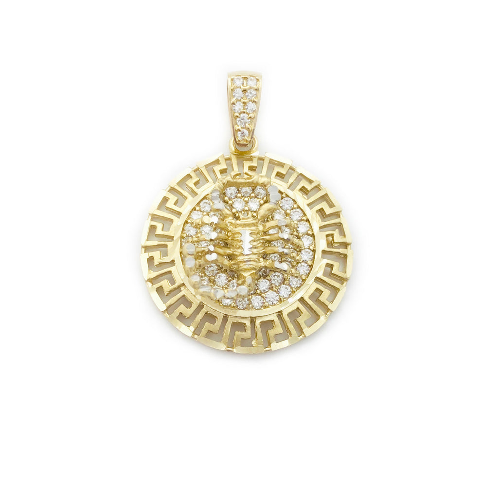 Meandering Frame Scorpion CZ Medallion Pendant (14K)