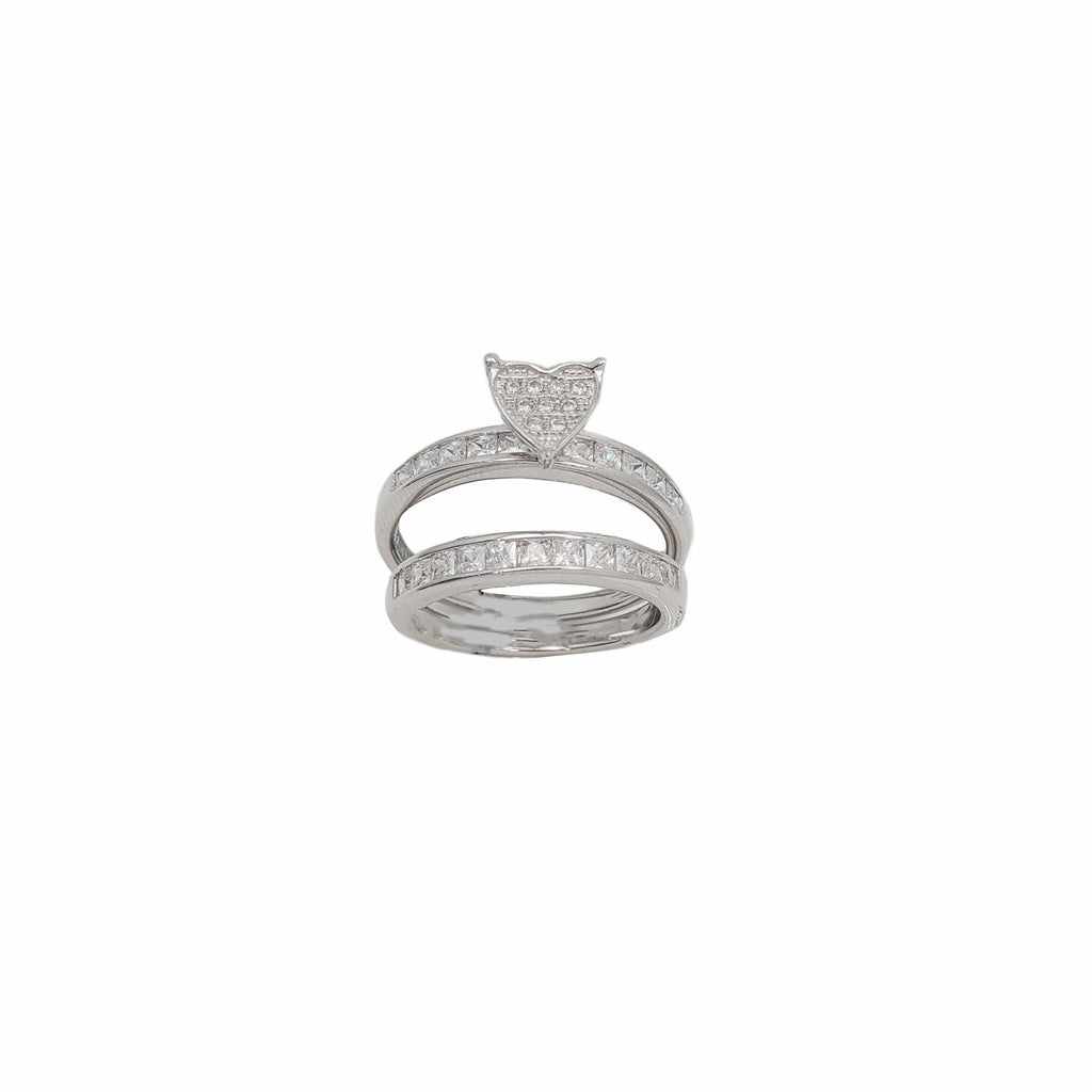 Zirconia Baguette 2 Pieces-Set Wedding Rings (Silver)