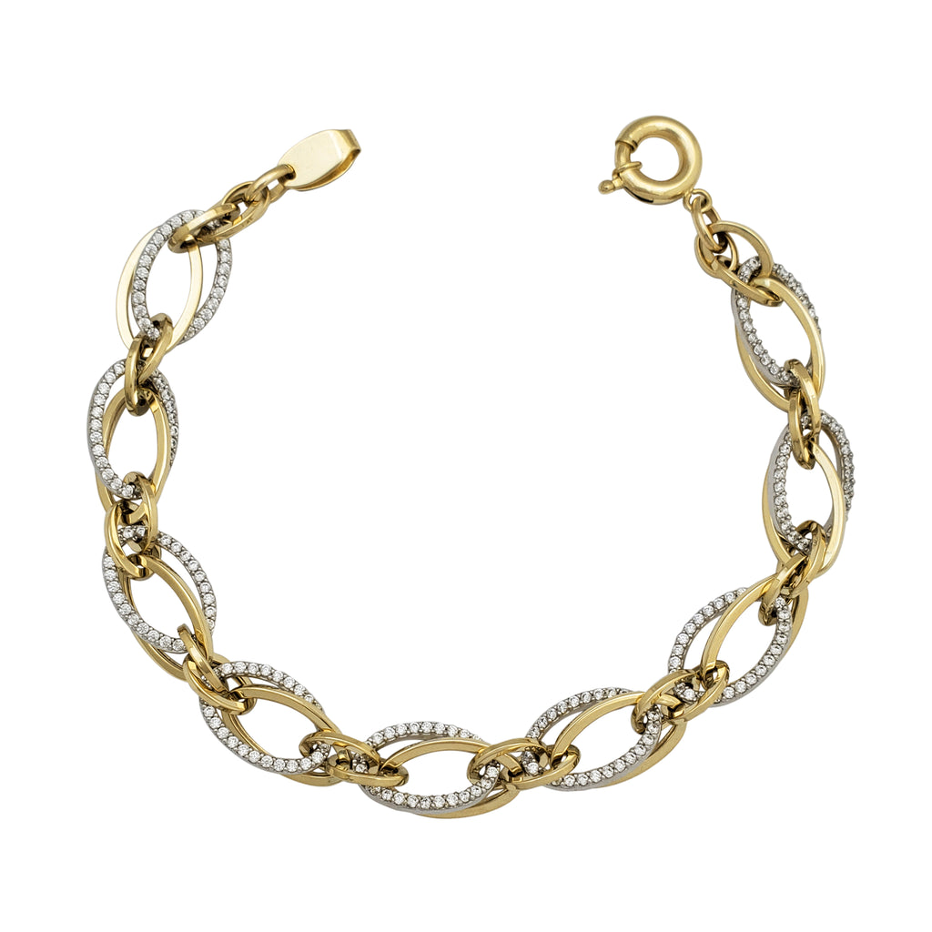 Two-Tone Zirconia Interlocking Oval Hoops Link Fancy Bracelet (14K)