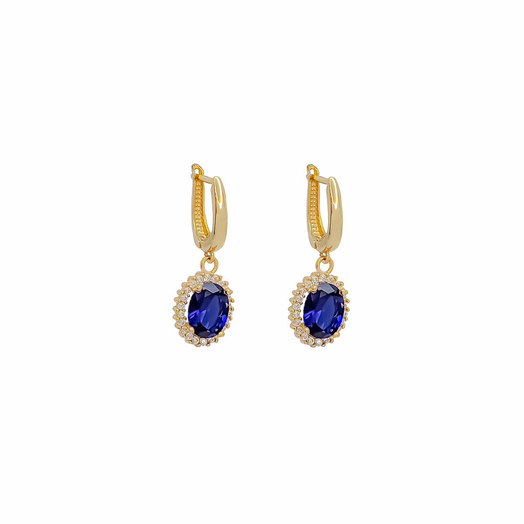 Oval Blue Cubic Zirconia Dangling Earrings (14K)